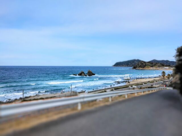 写真をよくご覧になられるとわかると思いますが、背後の海面には夫婦岩。
